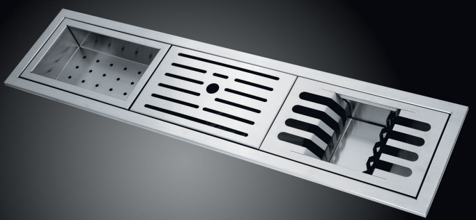 ग्रेनाइट सिंक स्थापित किया जा सकता हैसतह पर लगाए या नीचे लगाए हुएस्टेनलेस स्टील के सिंक को भी वर्कटॉप पर फ्लश-माउंटेड इंटीग्रेट किया जा सकता है।INOVI रसोई सिंकसभी मानक आधार इकाइयों में फिट(५०, ६०, ८० या ९० सेमी चौड़ाई के साथ) मैन्युअल या स्वचालित निकासी फिटिंग निकासी के लिए उपलब्ध हैं।