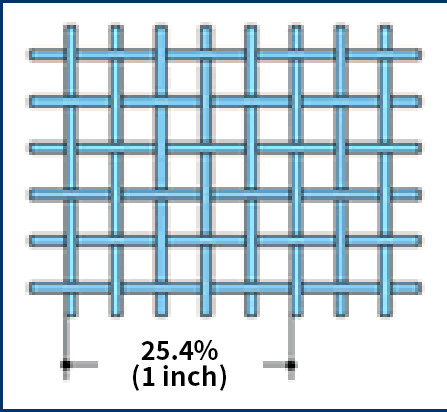स्टेनलेस स्टील के तार जाल प्रकार एक जाल के साथ चिह्नित कर रहा है। एक जाल एक तार जाल में जाल की संख्या का प्रतिनिधित्व करने वाली इकाई है,और सादे बुनाई के लिए 1 इंच के बीच एक पंक्ति में जाल की संख्या को संदर्भित करता हैजाल की संख्या जितनी अधिक होगी, जाल उतना ही बारीक होगा। हालांकि, ध्यान दें कि एक ही जाल के लिए भी तार के व्यास के आधार पर उद्घाटन क्षेत्र भिन्न होता है।सही आंकड़ा एक इंच के बीच एक पंक्ति में 5 मेष के साथ एक 5-मेष स्क्रीन दिखाता है.