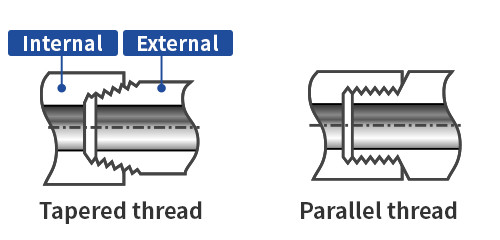यह कनेक्शन विधि पाइप धागे का उपयोग करती है और मुख्य रूप से 2 इंच या उससे छोटे आकार और 1 एमपीए या उससे कम के दबाव के कनेक्शन के लिए उपयोग की जाती है। क्योंकि यह केवल धागे के प्रसंस्करण द्वारा स्थापित करना आसान है,यह किफायती है क्योंकि यह अन्य कनेक्शन विधियों की तुलना में बड़ी संख्या में भागों की आवश्यकता नहीं हैदूसरी ओर, मरम्मत आदि में इसे फिर से बनाना मुश्किल हो जाता है। स्क्रू के प्रकारों के लिए 'महिला धागा और पुरुष धागा' और 'टापर धागा और समानांतर धागा' हैं।वाल्व है अधिकांश के लिए महिला धागा.