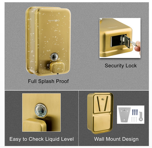 INOVI औद्योगिक दीवार माउंट सोने साबुन डिस्पेंसर
